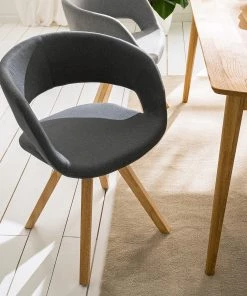 Mørteens Armlehnenstuhl Buggio – Webstoff / Gummibaum massiv – Webstoff Cors: Dunkelgrau – 2er Set