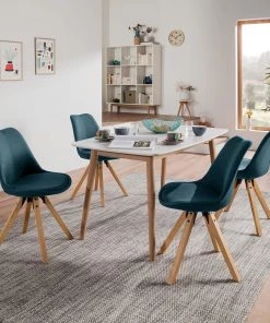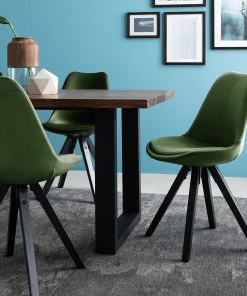 Mørteens Polsterstuhl Aledas lV – Samt / Gummibaum massiv – Dunkelgrün – Schwarz – 4er Set