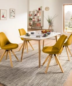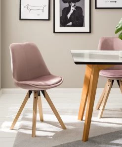 Mørteens Polsterstuhl Aledas lV – Samt / Gummibaum massiv – Altrosa – Beige – 2er Set