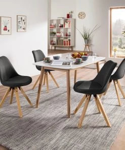 Mørteens Polsterstuhl Aledas lV – Samt / Gummibaum massiv – Dunkelgrau – Schwarz – 4er Set