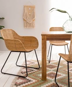 Ars manufacti Esszimmerstuhl Vuna (2er-Set) – Rattan / Metall – Rattan Natur / Schwarz