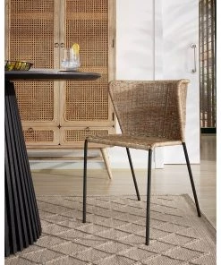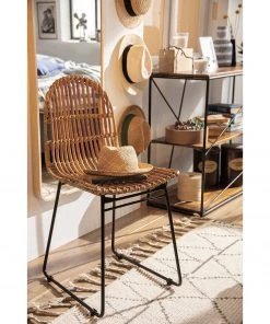 Ars manufacti Esszimmerstuhl Edison (2er-Set) – Rattan / Stahl – Hellbraun / Anthrazit