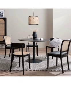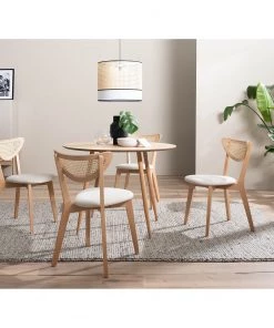 Studio Copenhagen Esszimmerstuhl Coy (2er-Set) – Rattan & Webstoff / Buche massiv – Cappuccino