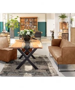 Red Living Polsterstuhl Wilbur (2er-Set) – Microfaser / Eiche massiv – Vintage Braun