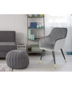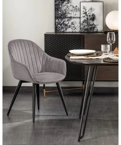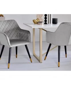 Jack & Alice Armlehnenstuhl Mardore – Samt / Stahl – Platingrau