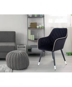Kayoom Armlehnenstuhl Amino – Samt / Stahl – Schwarz / Silber