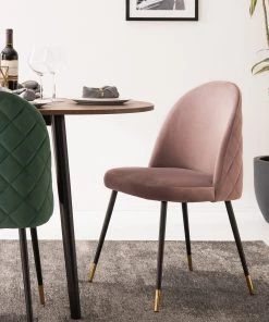 Jack & Alice Polsterstuhl Farum – Samt / Stahl – Schwarz – Samt Zala: Altrosa – 2er Set