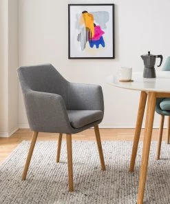 Mørteens Esszimmerstuhl Brea (2er-Set) – Webstoff / Esche massiv – Esche – Lichtgrau