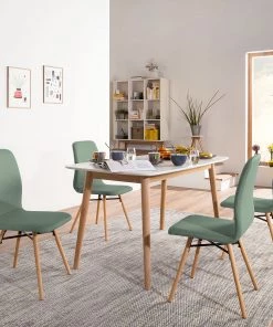 Mørteens Armlehnenstuhl Buggio – Webstoff / Gummibaum massiv – Webstoff Cors: Mintgrau – Einzelstuhl