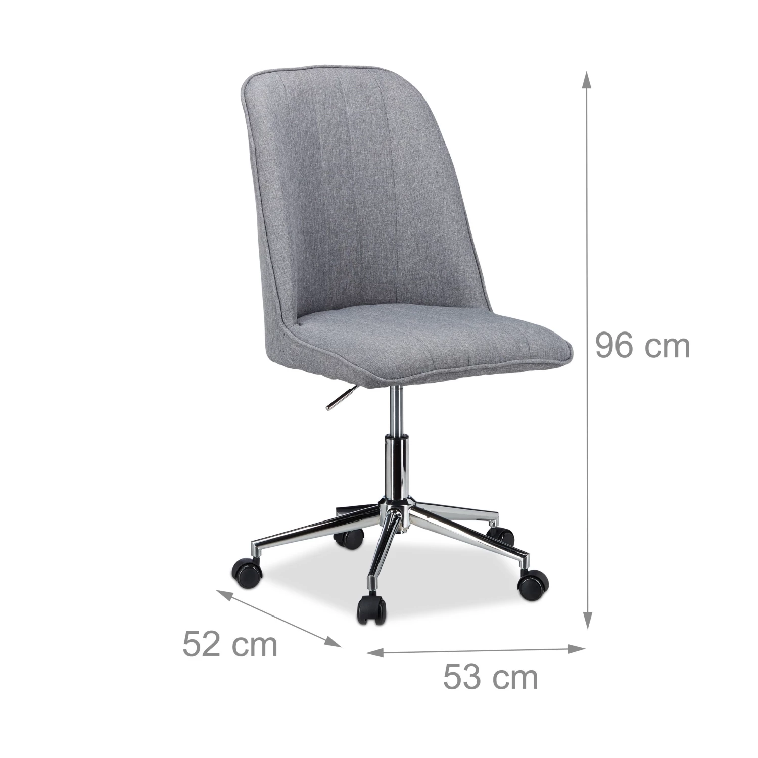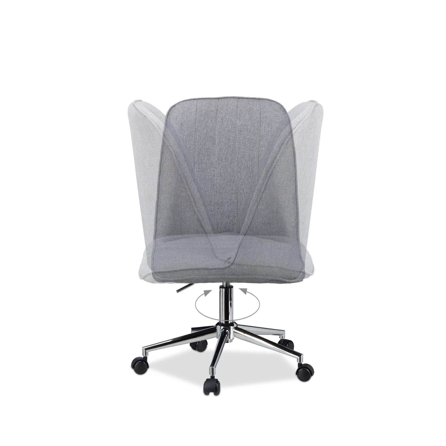 Der graue Drehstuhl mit runder, hoher Lehne ist ideal für das Büro oder Zuhause.