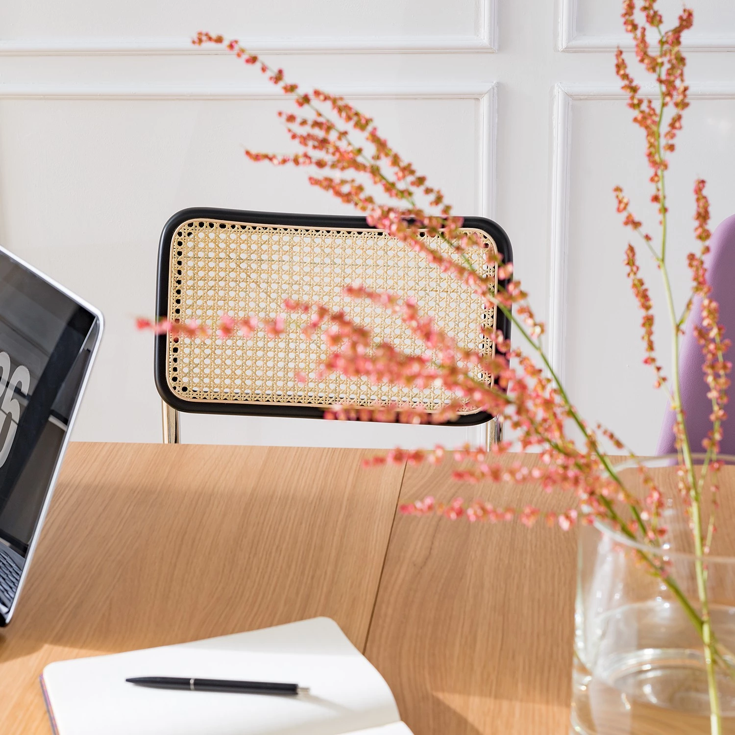 - Sitz- & Rückenfläche: Peddigrohrgeflecht (Rattan)