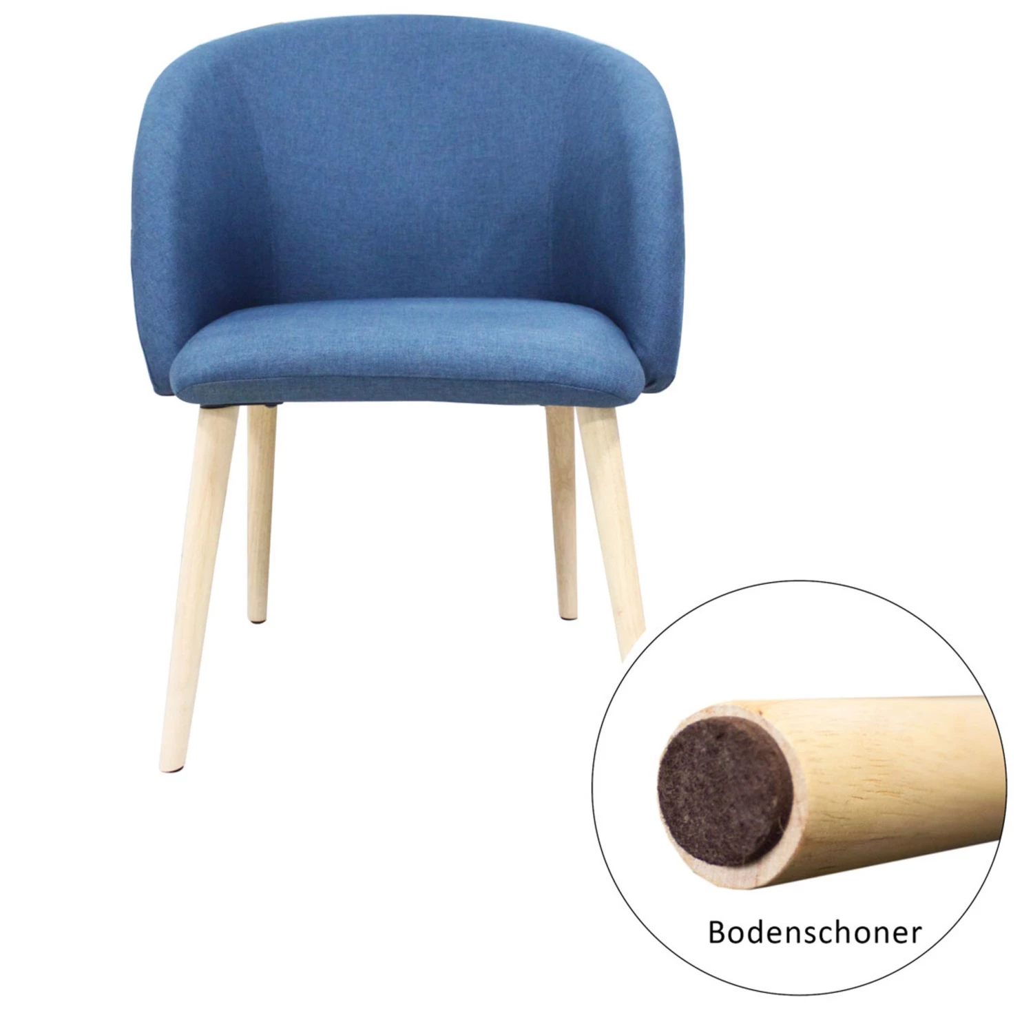 Der Stoff verleiht der Oberfläche eine schöne Haptik. Die Stuhlbeine bestehen aus Holz und besitzen einen Bodenschoner. Die gepolsterte Rückenfläche ist angenehm geformt und lädt zum Entspannen ein.