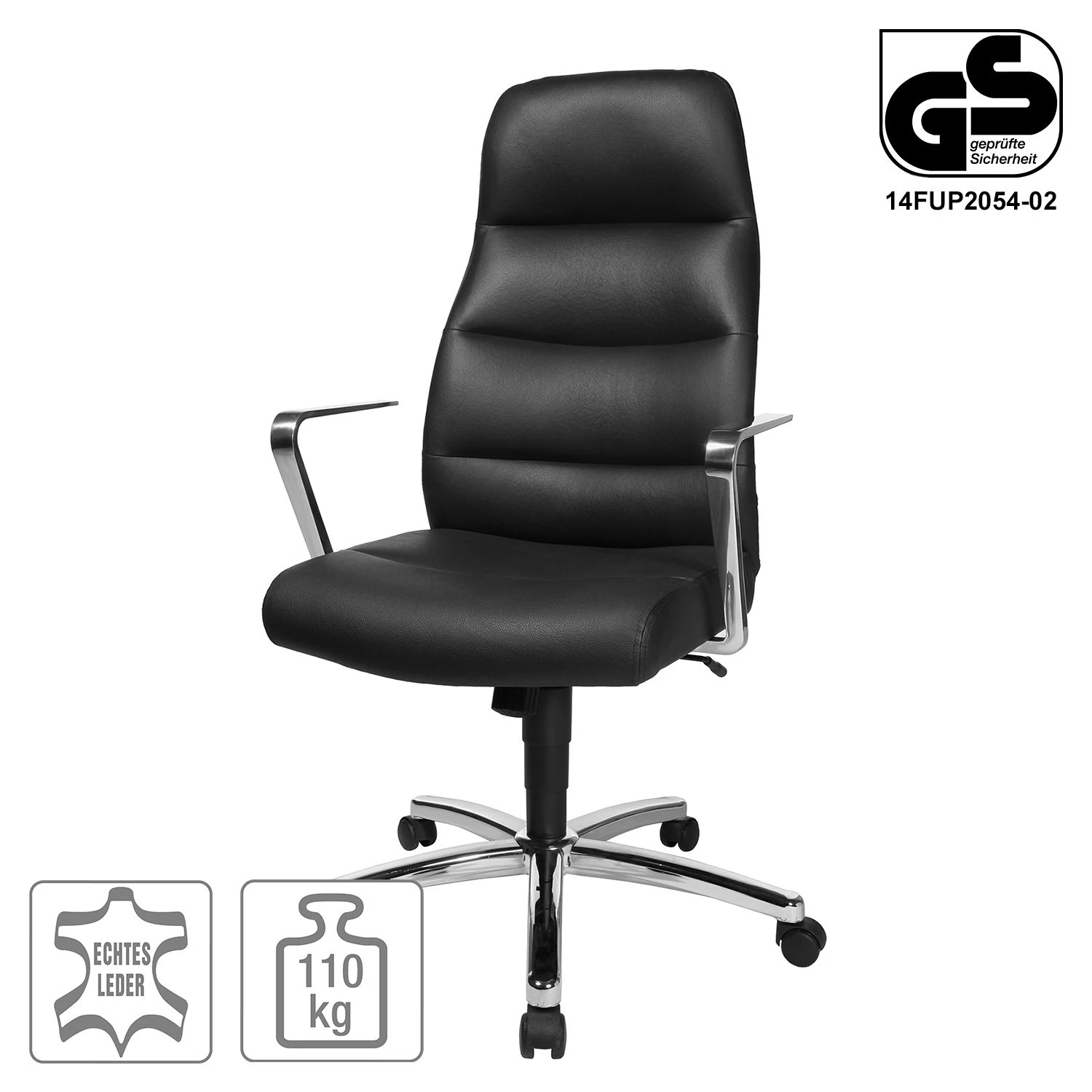 - Armlehnen & Drehkreuz: Chrom