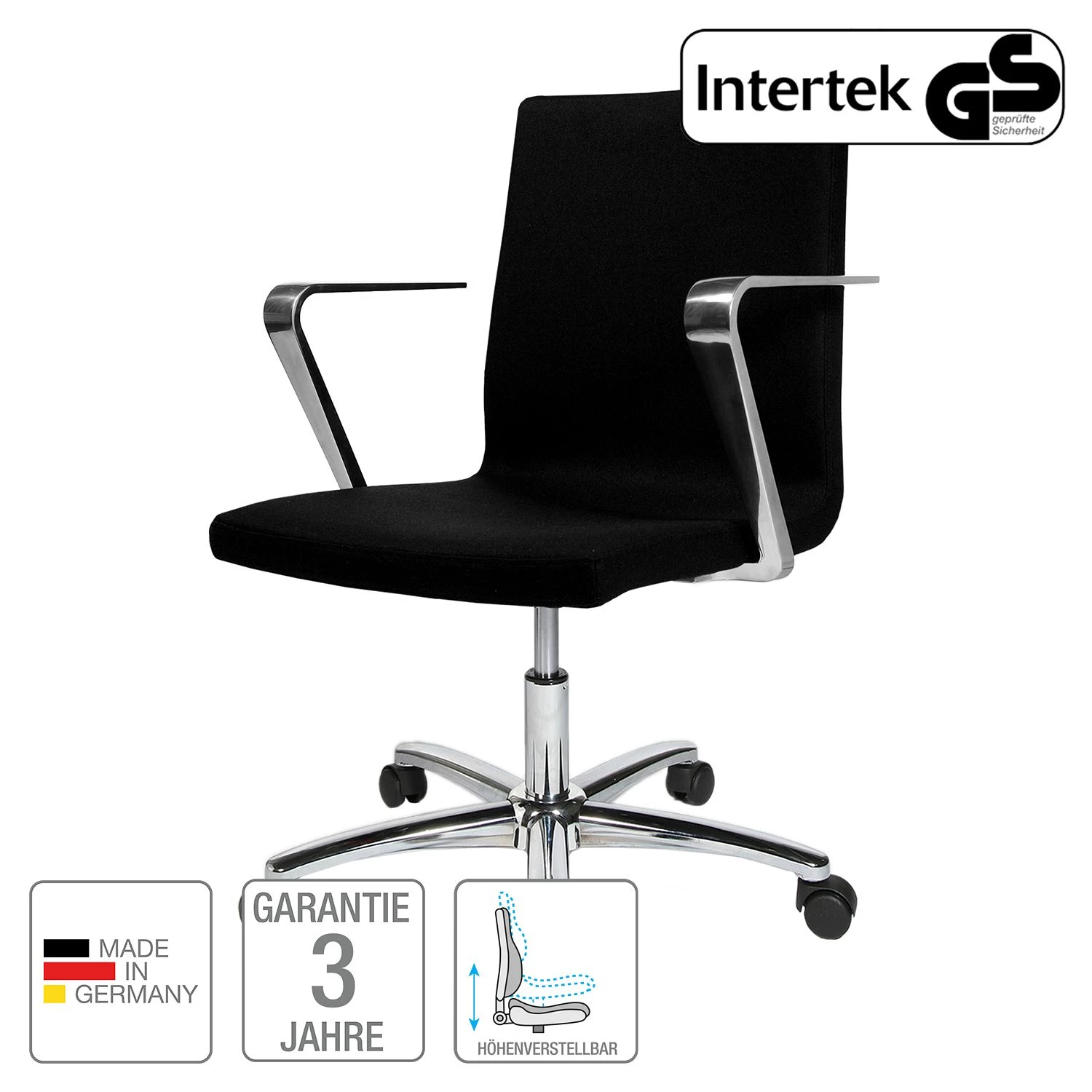 - Armlehnen & Fußkreuz: Chrom