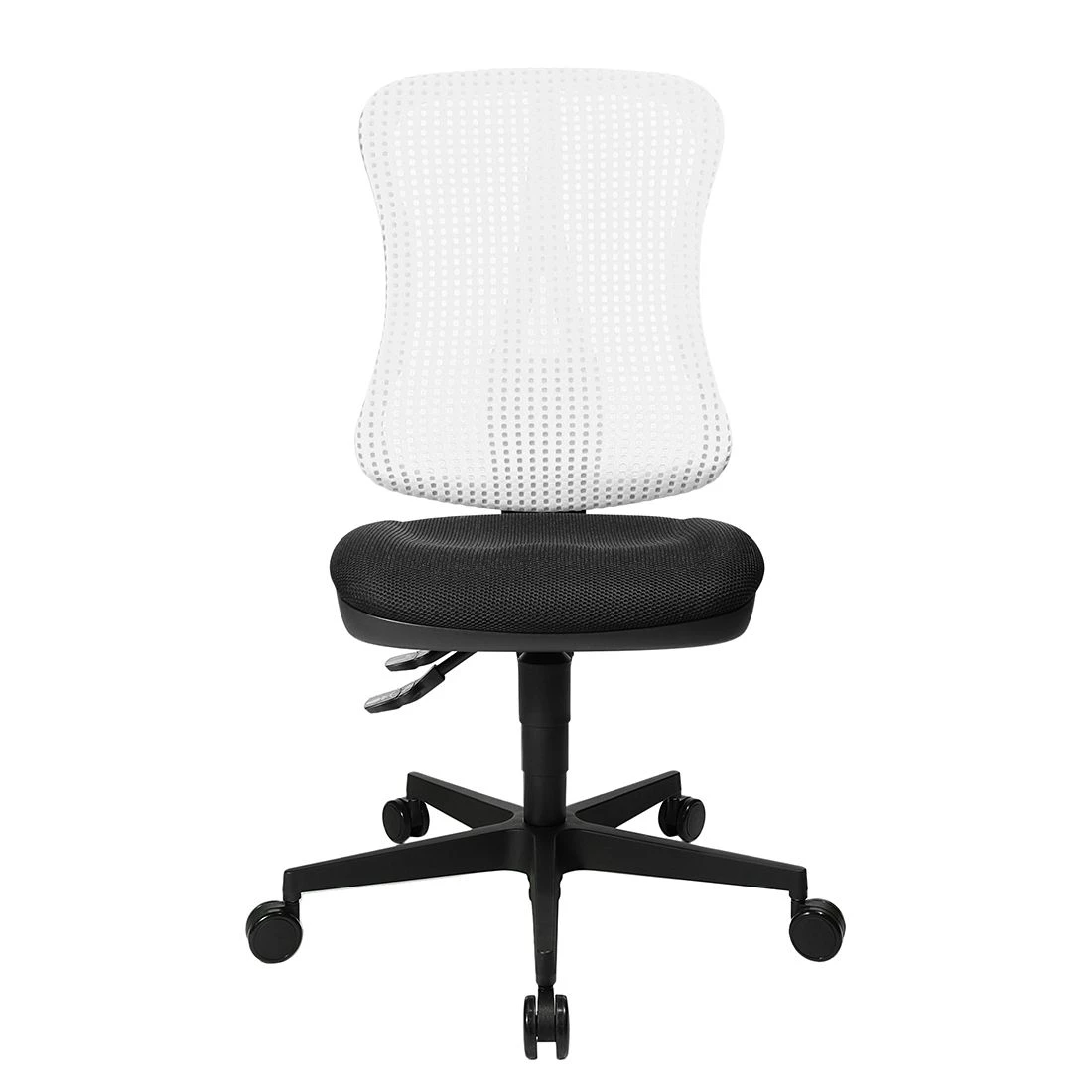 Kombiniert mit einem Schreibtisch im modernen Stil ergänzen Sie Ihre Einrichtung mit diesem weiß-schwarzen Stuhl von Topstar stilsicher. Der unkomplizierte Kunststoff des Bürostuhls könnte kaum leichter zu pflegen sein. Darüber hinaus ist die Sitzfläche bei diesem Bürostuhl dank des Bezugs aus Stoff angenehm weich. Eine echte Besonderheit ist bei diesem Bürostuhl die individuelle Höhenverstellbarkeit.