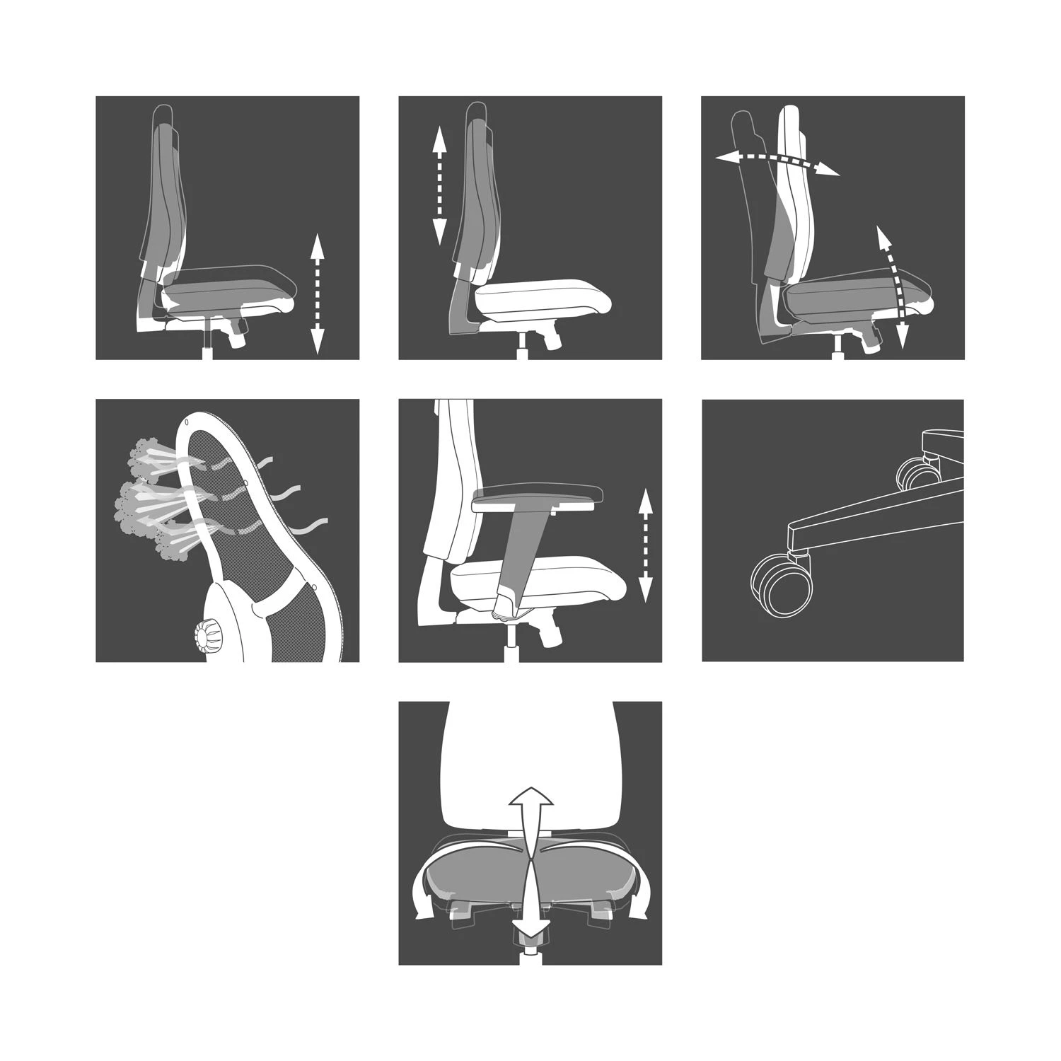 - Armlehnen: Höhenverstellbare Armlehnen