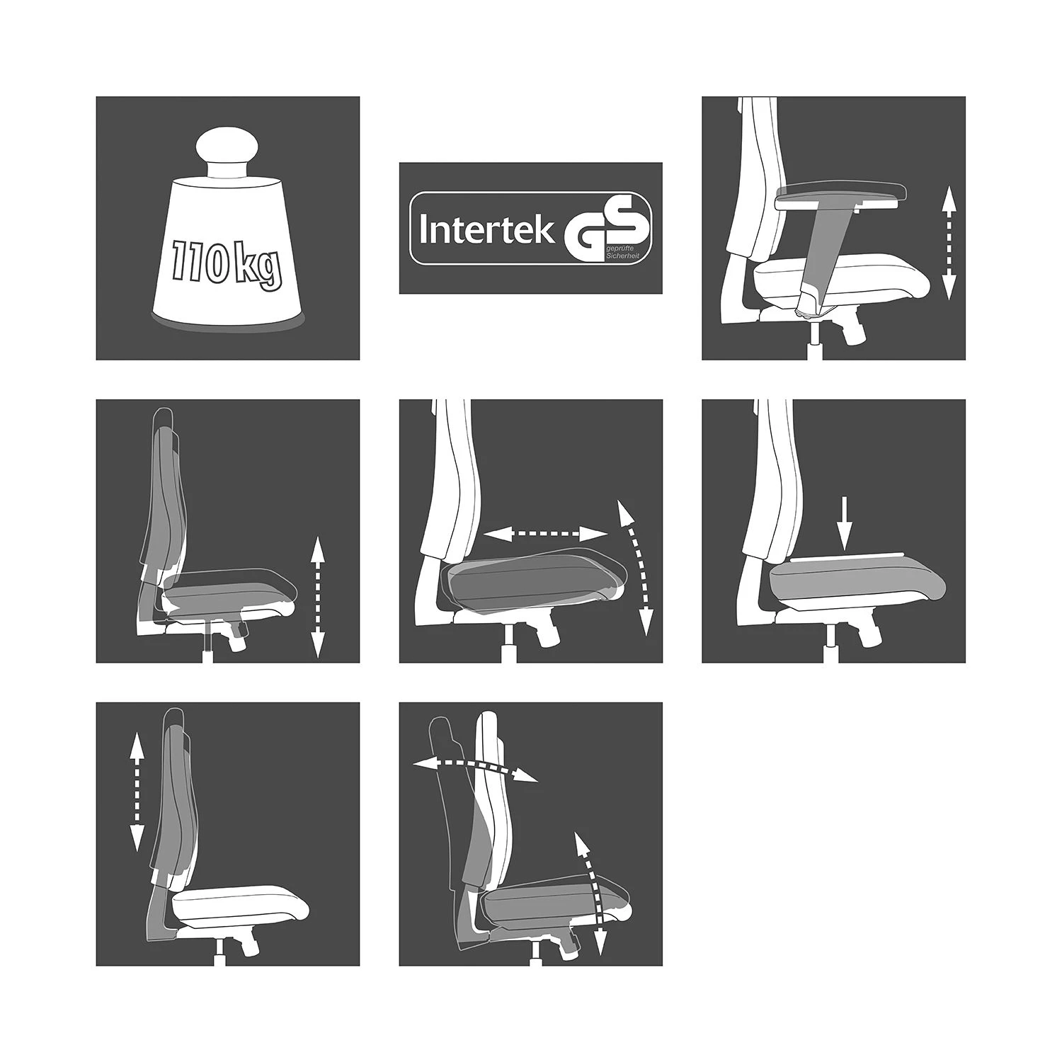 - Punktsynchronmechanik: Federkraft individuell auf das Körpergewicht einstellbar, stufenlos arretierbar