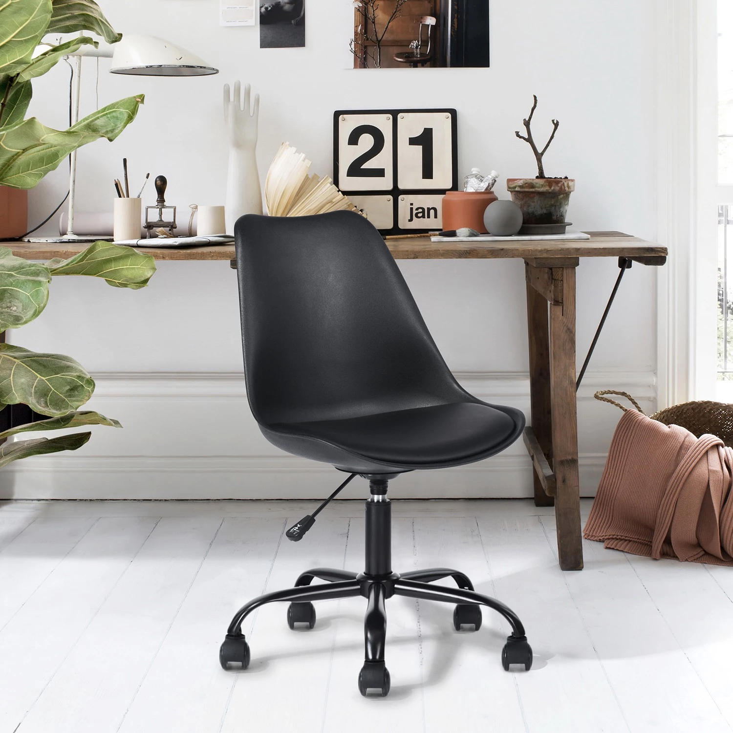 Unser Bürostuhl BLOKHUS BLACK ist perfekt für ein elegantes und modernes Büro. Von Ihrem Schlafzimmer, Ihrem Büro bis zu Ihrem Wohnzimmer passt es sich Ihrem Arbeitsbereich an.