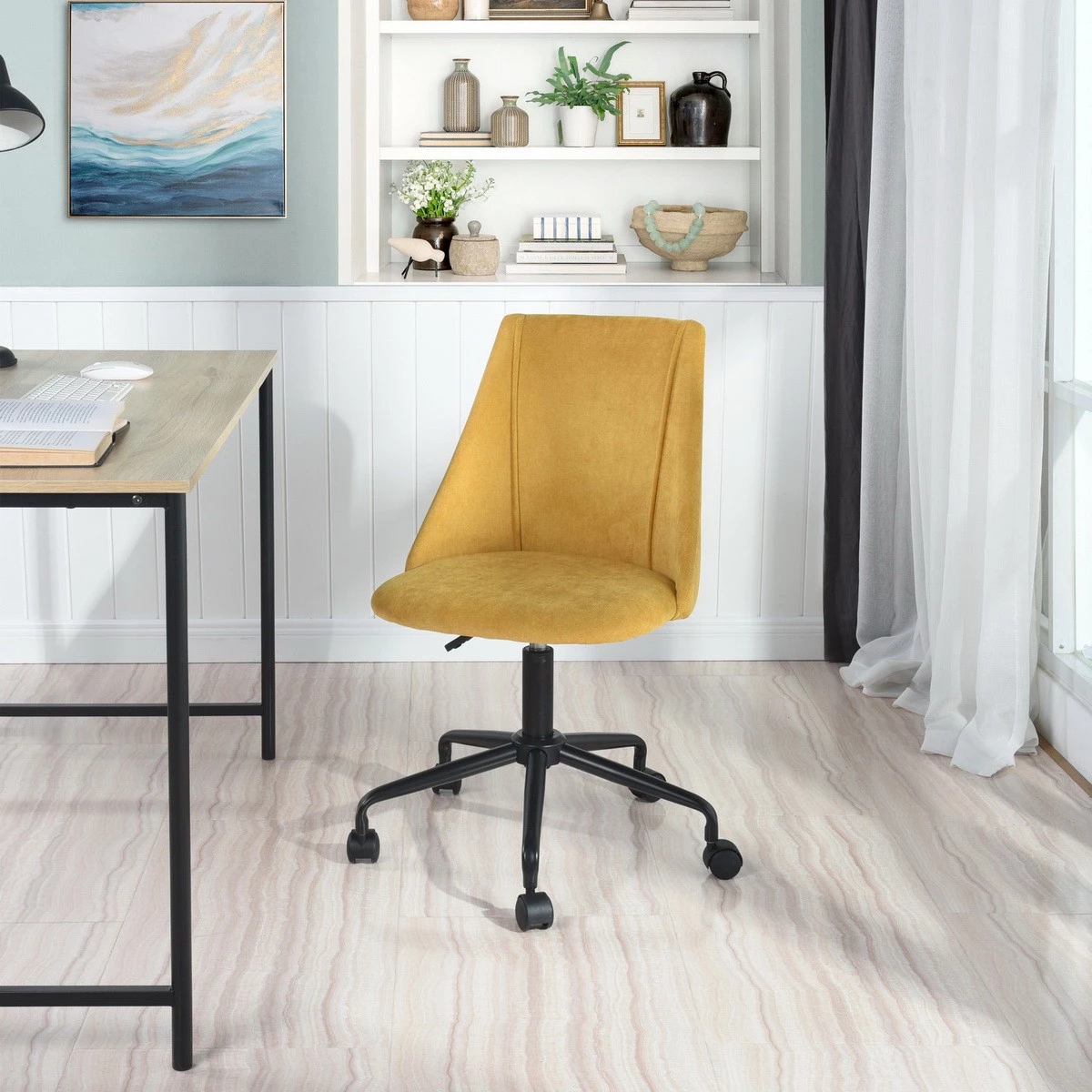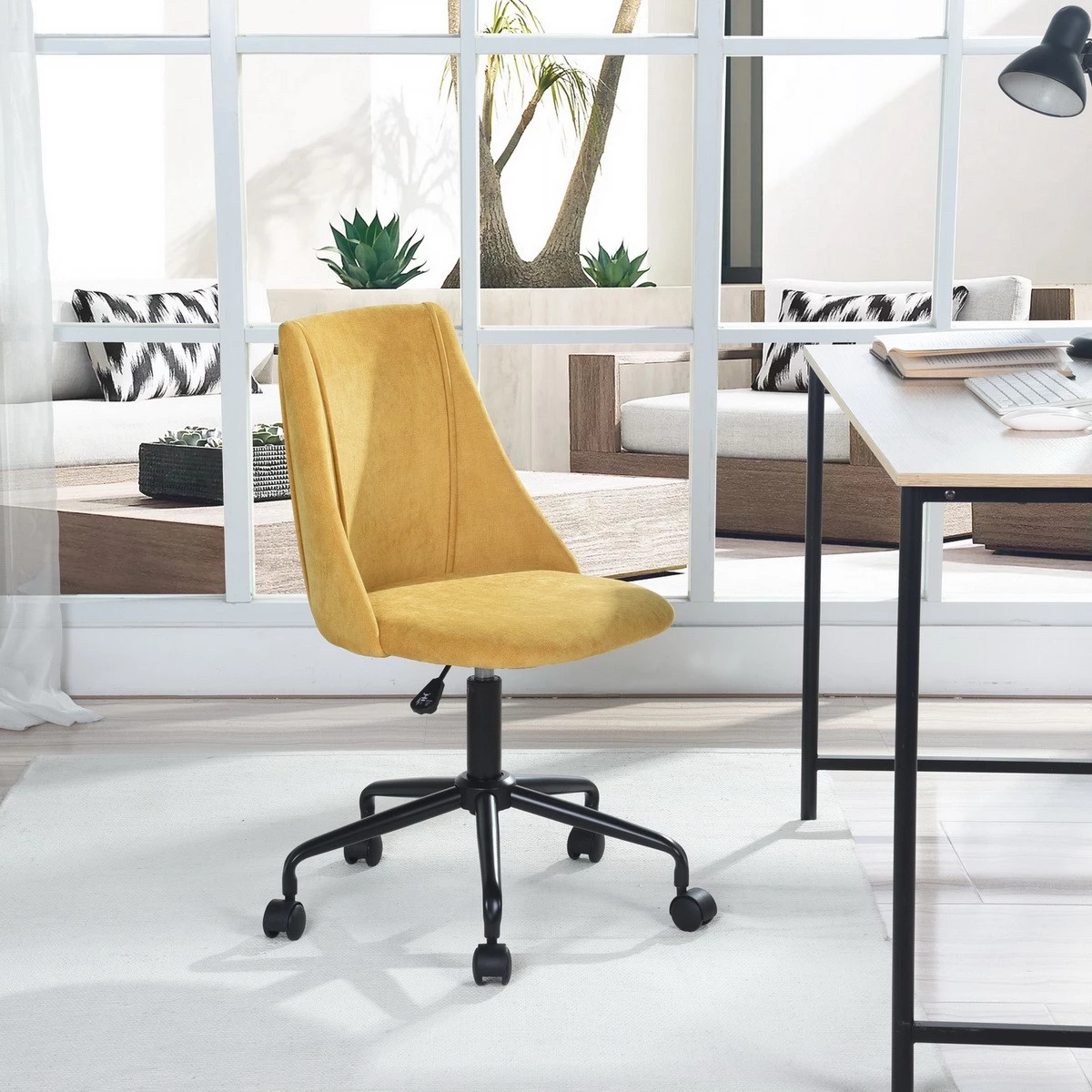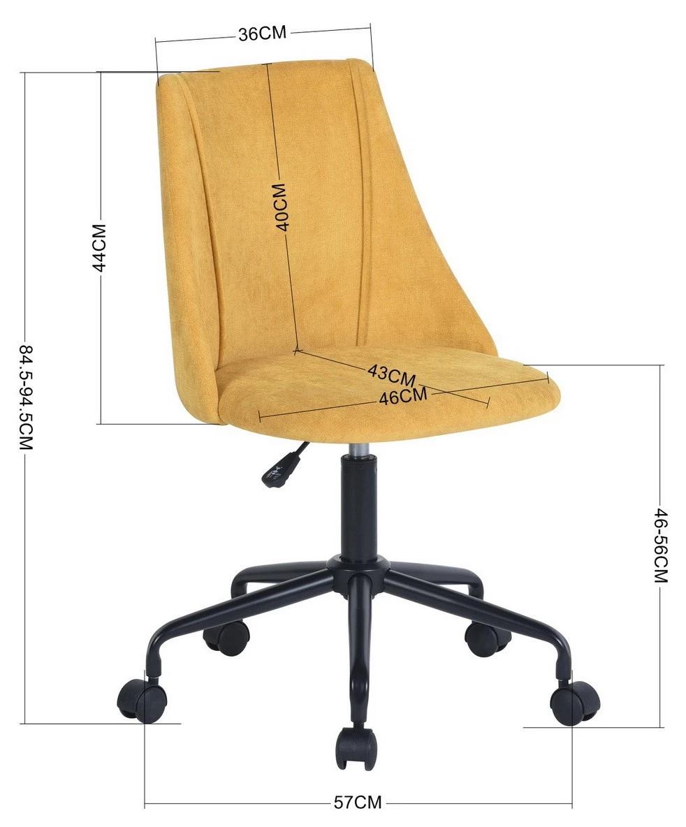 Unser gelber Bürostuhl CIAN TERRY YELLOW ist zweifellos der ideale Sitzplatz für eine originelle Büroecke in Ihrem Schlafzimmer, Ihr Büro in Ihrem Wohnzimmer. Dieses elegante Modell bringt Farbe und Laune in Ihr Zimmer.