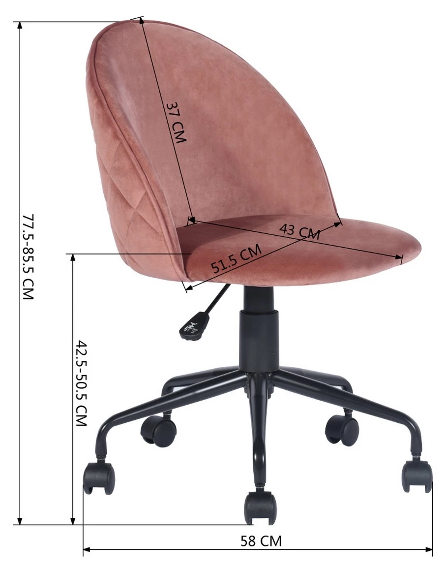 Wir präsentieren Ihnen unseren rosa Samt-Bürostuhl ROMBA PINK! Dies ist der Stuhl, den Sie für einen originellen und stilvollen Arbeitsplatz benötigen. Von Ihrem Wohnzimmer über Ihr Büro bis hin zu Ihrem Schlafzimmer wird es Ihren Bürobereich verschönern.