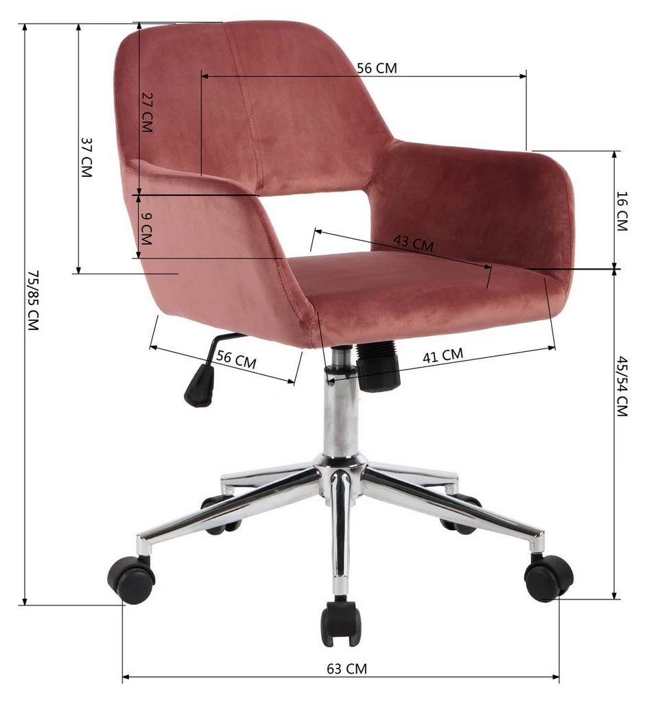 Dieser rosa Samt-Bürostuhl ist ideal für einen modernen und komfortablen Arbeitsplatz und erfüllt alle Ihre Anforderungen.