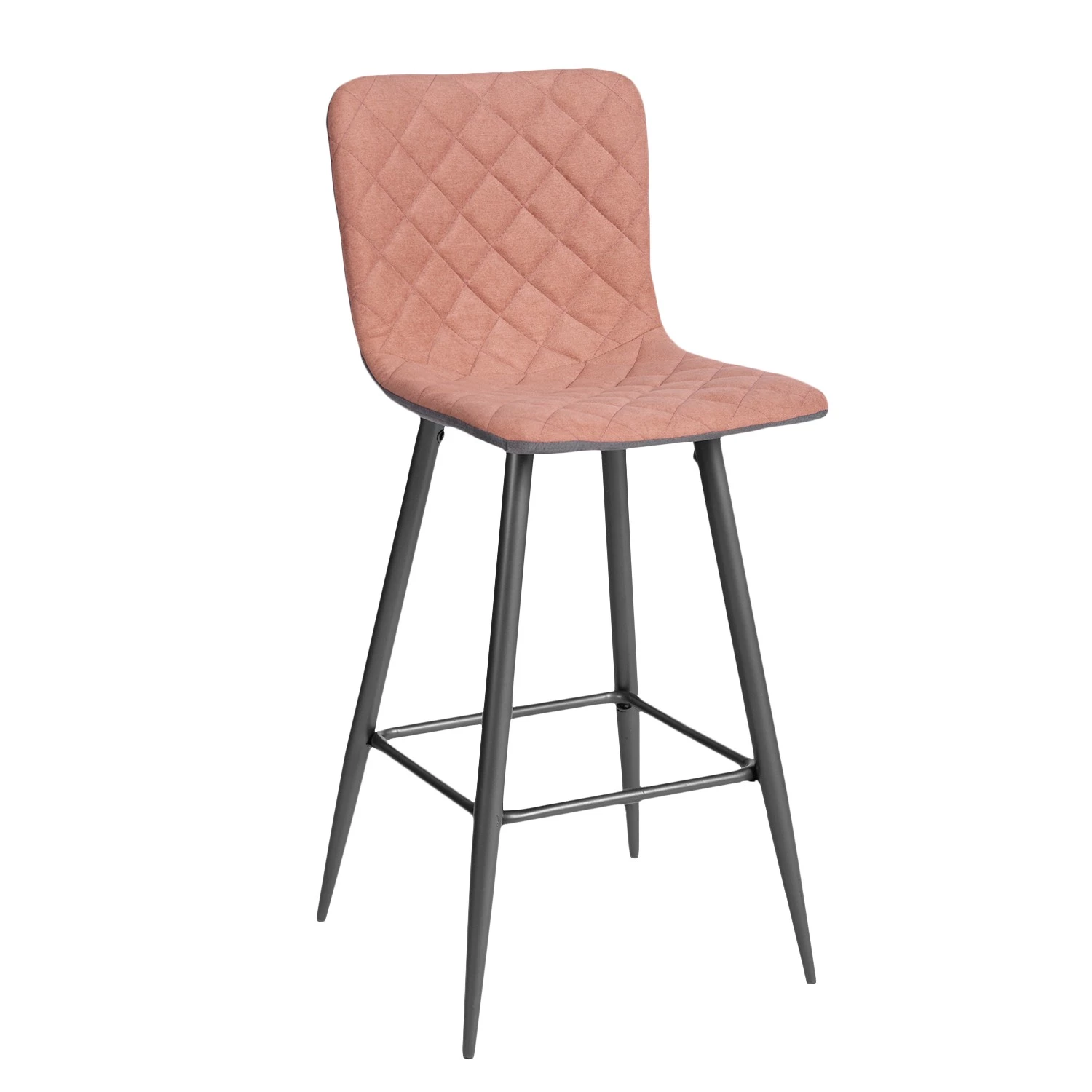 Wir schätzen auch die Konstruktionsmaterialien dieses Designer-Barstuhls (Metall, Stoff usw.), die ihn zu einem soliden und robusten Hocker machen.