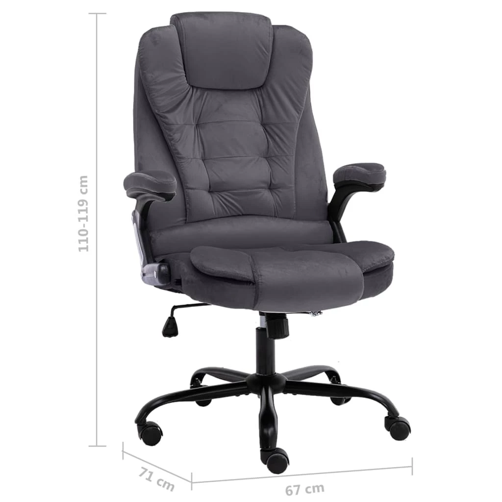 Er verfügt über eine hohe Rückenlehne, geschwungene Armlehnen und einen dick gepolsterten Sitz, um selbst an langen Arbeitstagen Komfort zu bieten. Das höhenverstellbare Design ermöglicht die Anpassung an die Schreibtischhöhe und sorgt für mehr Komfort und eine gesunde Ausrichtung der Wirbelsäule. Dieser Ruhesessel ist mit Nylonrollen ausgestattet und lässt sich daher ganz einfach umher verschieben.