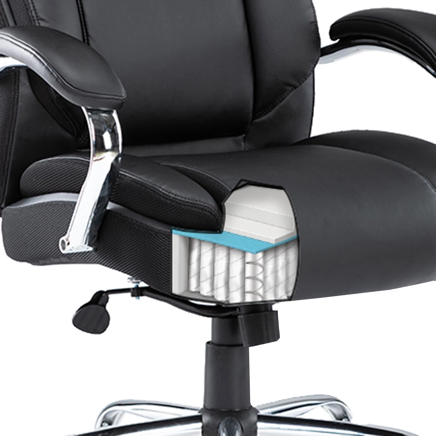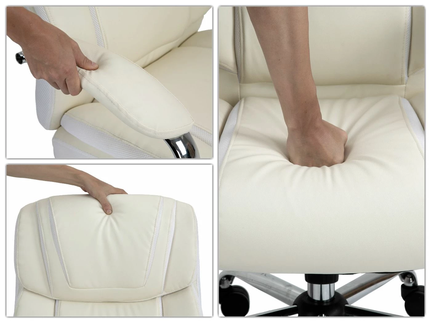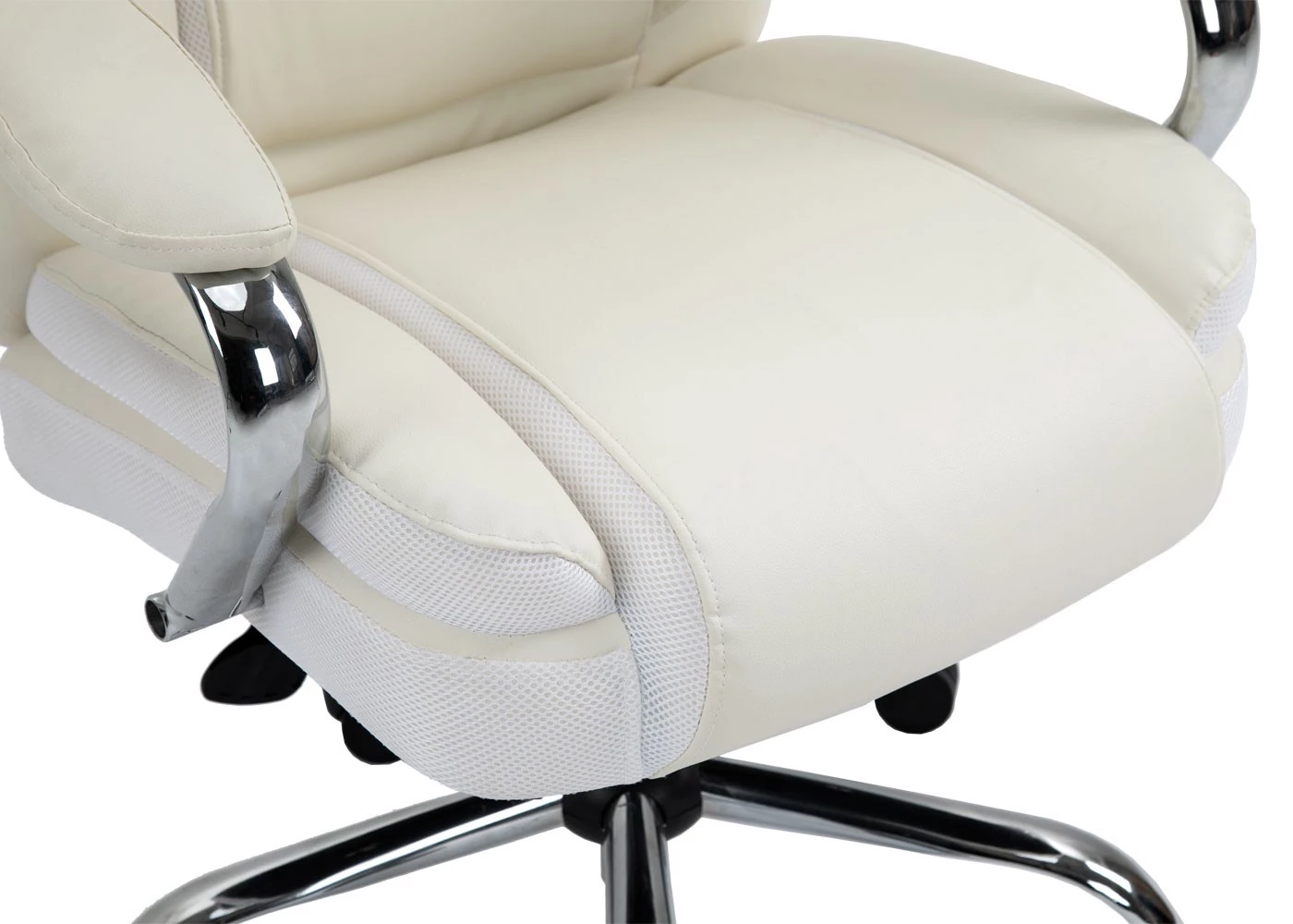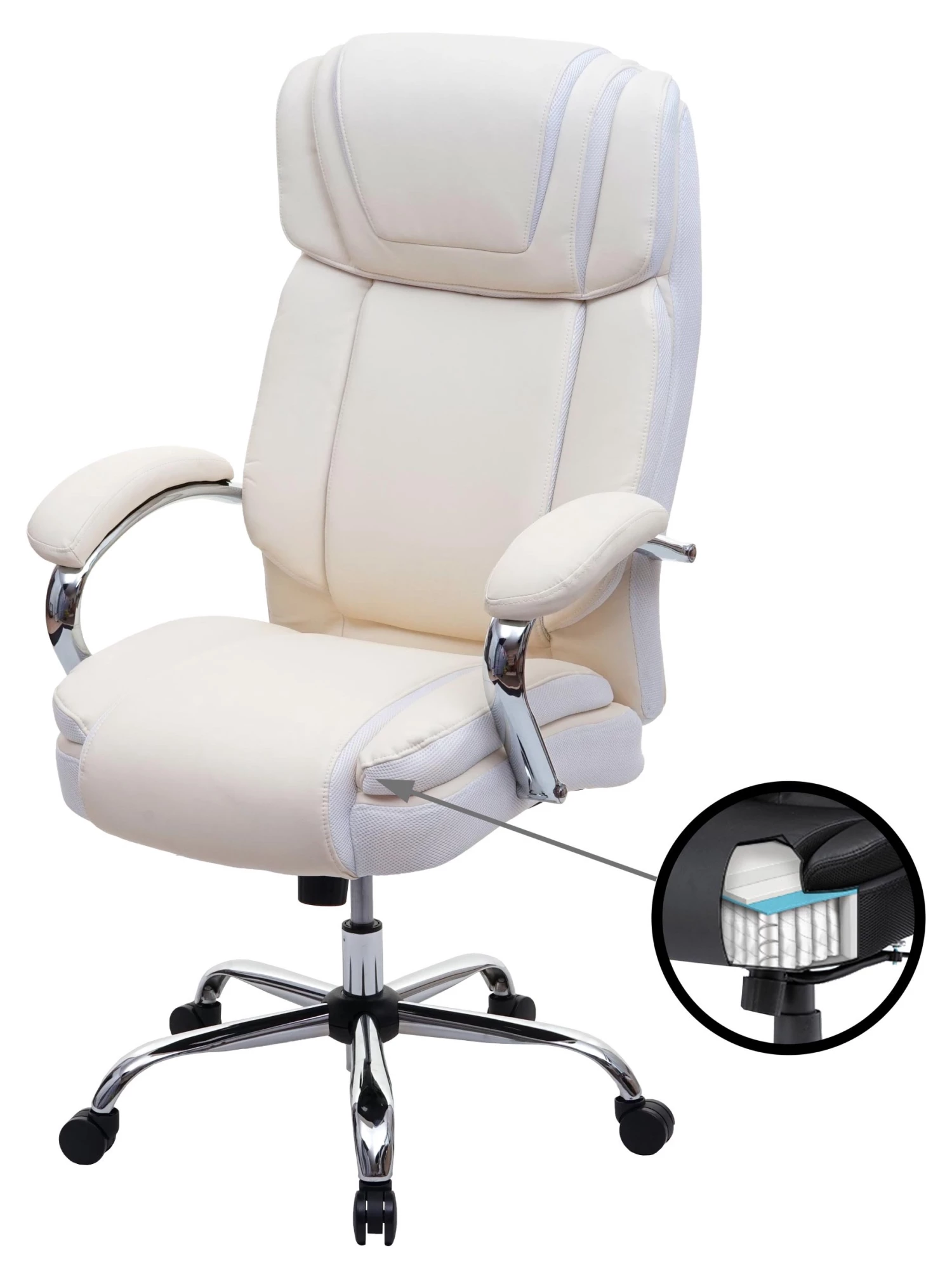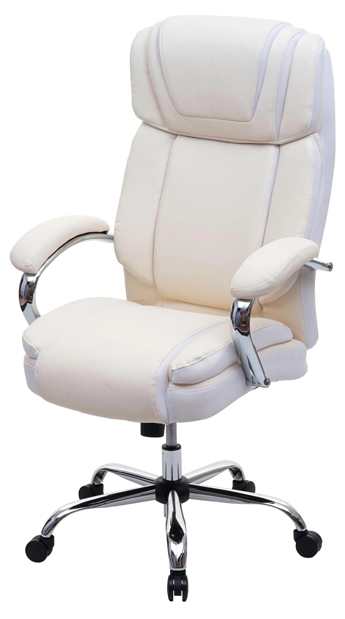 Dieser Chefsessel im ausgefallenen Look ist in Ihrem Arbeitszimmer ein echter Blickfang. Mit seinem stilvollen Design und der tollen Farbgebung des pflegeleichten Kunstleders bringt der Stuhl Gemütlichkeit in Ihre Räumlichkeiten. Abgerundet wird das Gesamtbild durch das verchromte Fußkreuz, das zusätzlich Eleganz im Erscheinungsbild schafft.